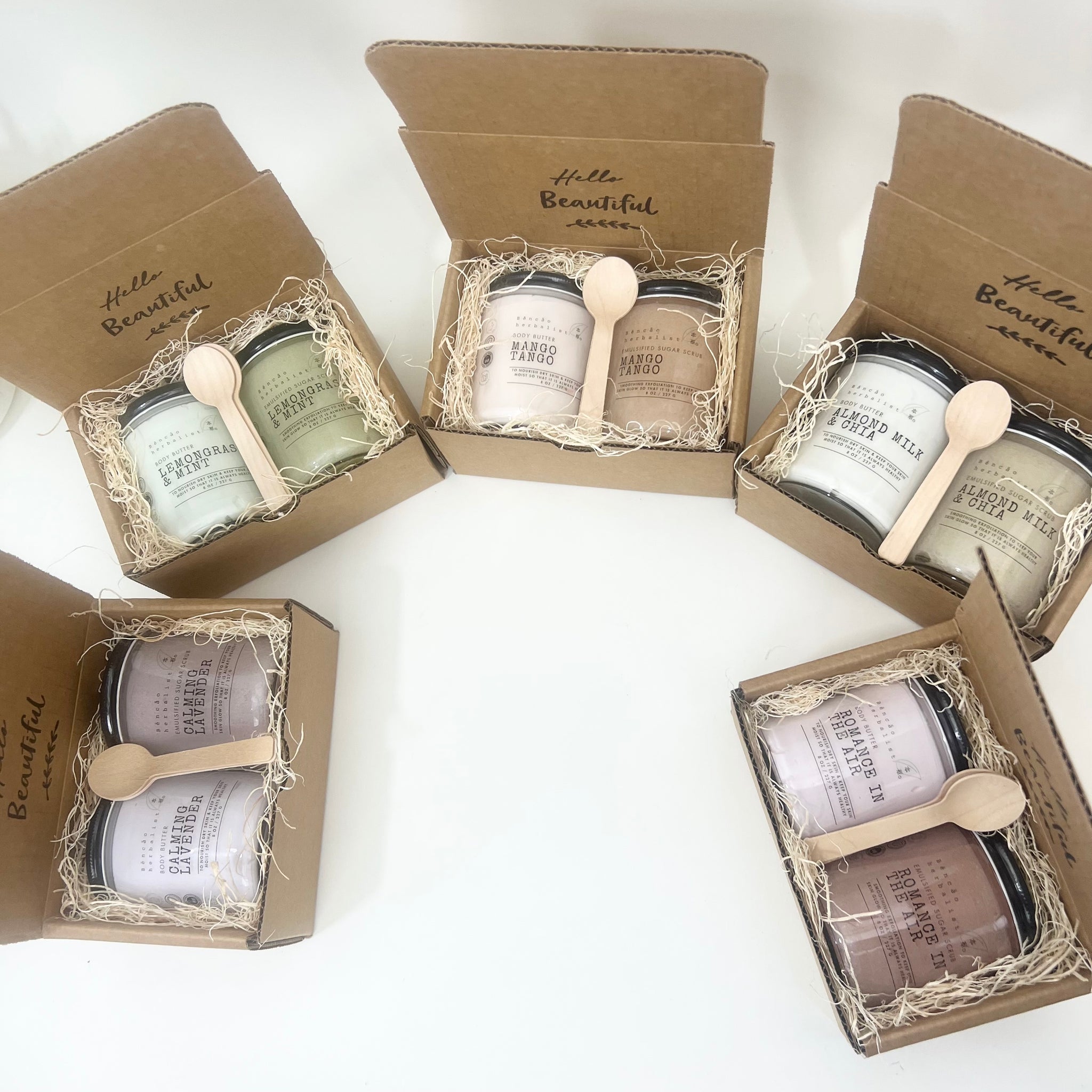 Choose between 4 oz or 8 oz Body Butter and Sugar Scrub, perfectly sized for gifting or treating yourself.